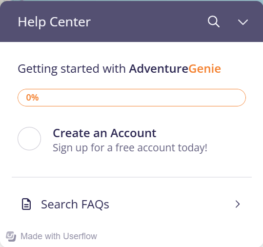 For help on purchasing an AdventureGenie Subscription, you may use the Help Center located in the lower right-hand corner of any page on our website (the tab will say "Get Started" until you click on it). Then select "Create an Account."