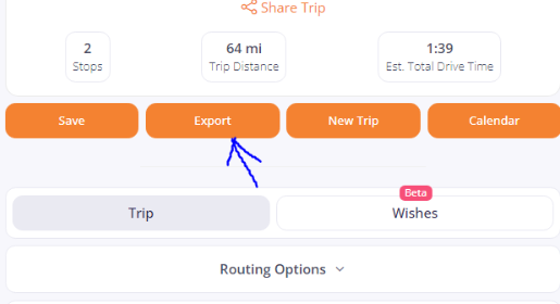 1. After creating your trip, click on Export found in the top left corner of your stoplist
